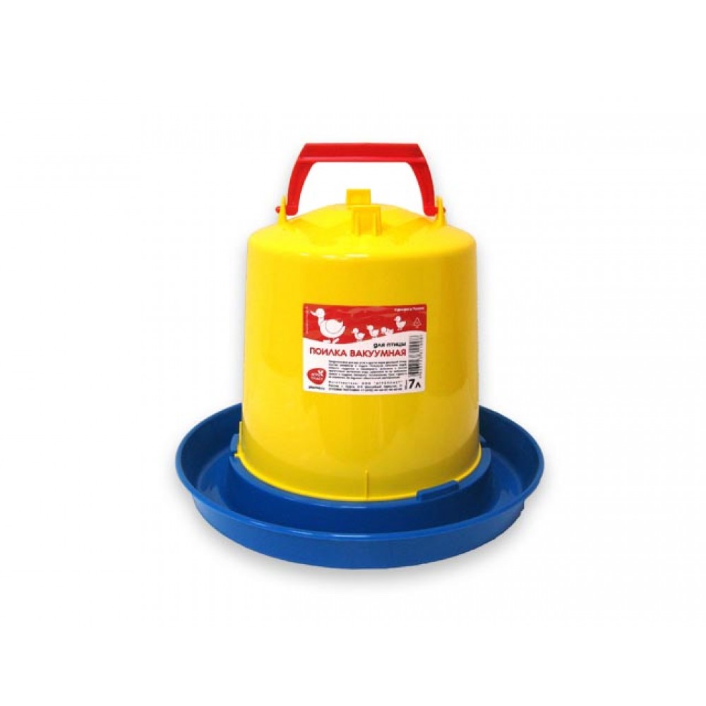 Поилка вакуумная 7 л для домашней птицы. Давление в поилке препятствует вытеканию воды, удерживая ее на требуемом уровне в поддоне.