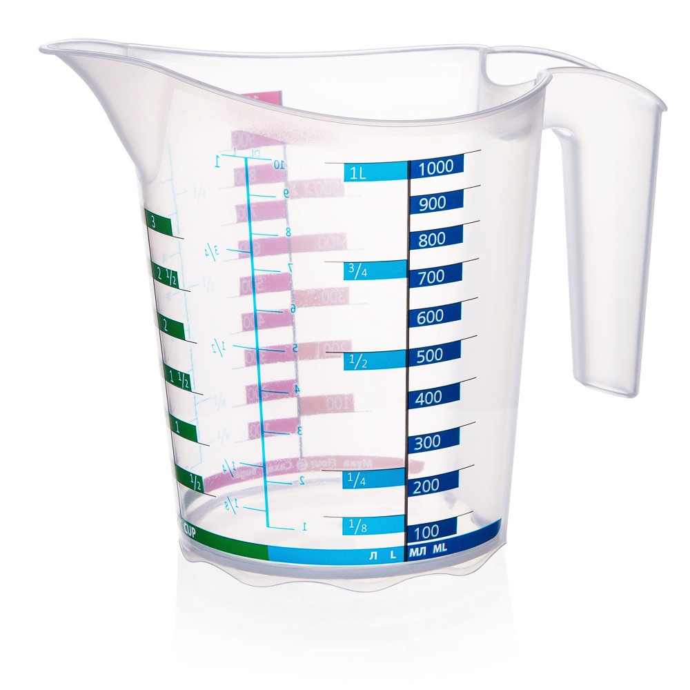 Кружка мерная пластиковая имеет легкий вес за счёт самого материала, из которого она производится. Выполнено изделие из плотного пищевого пластика, что делает его абсолютно безопасным для здоровья. Прозрачные стенки кружки мерной пластиковой позволяют с точностью отмерить количество нужного продукта в граммах или литрах.
