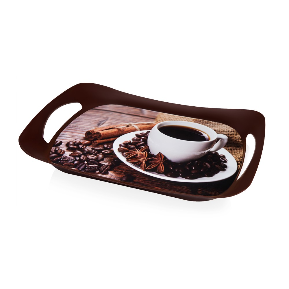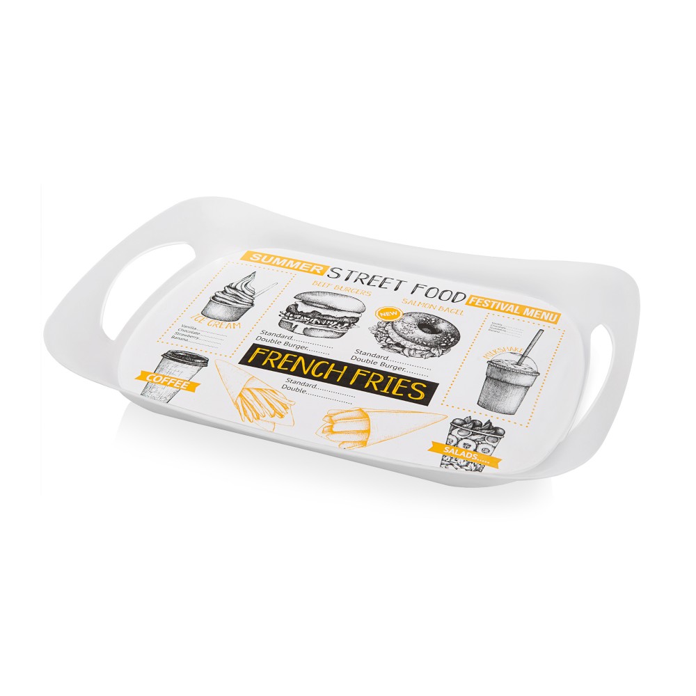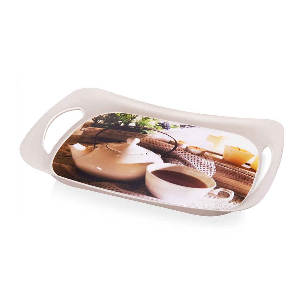 Поднос выполнен из высококачественного пластика, который не деформируется под воздействием высокой температуры. Поверхность изделия обработана декоративным покрытием, по краям поднос оснащен эргономичными ручками, что помогает надёжно удерживать его в руках. Обладает особой лёгкостью, прочностью и практичностью. Стойко выдерживает высокую нагрузку и имеет надёжную конструкцию, устойчивую к ударам и царапинам. Кроме того, модель имеет привлекательный дизайн, который гармонично впишется как в домашний, так и в садовый интерьер.
