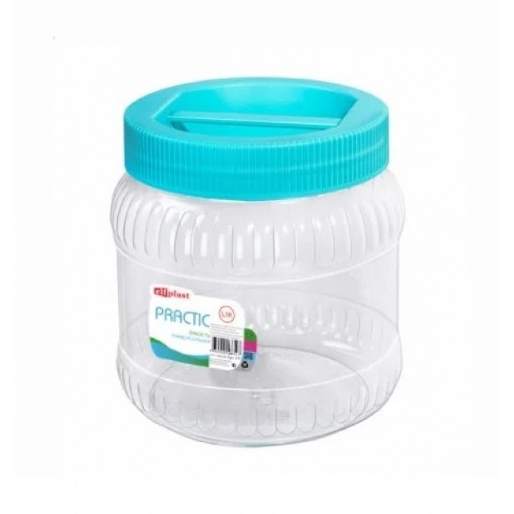 Емкость Practic универсальная 1,5 л - небольшая пластиковая тара с закручивающейся крышкой. Отлично подойдет для домашнего хозяйства и дачи. Идеальна для хранения как сыпучих, так и жидких продуктов. Выполнена из прочного прозрачного пластика (первичное сырье). Крышка оснащена ручкой для удобной переноски, а также плотно прилегает, за счет чего обеспечивает полную герметичность.
