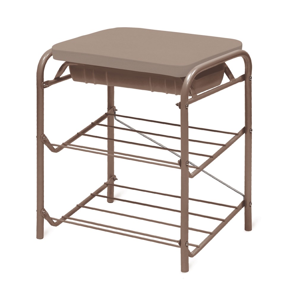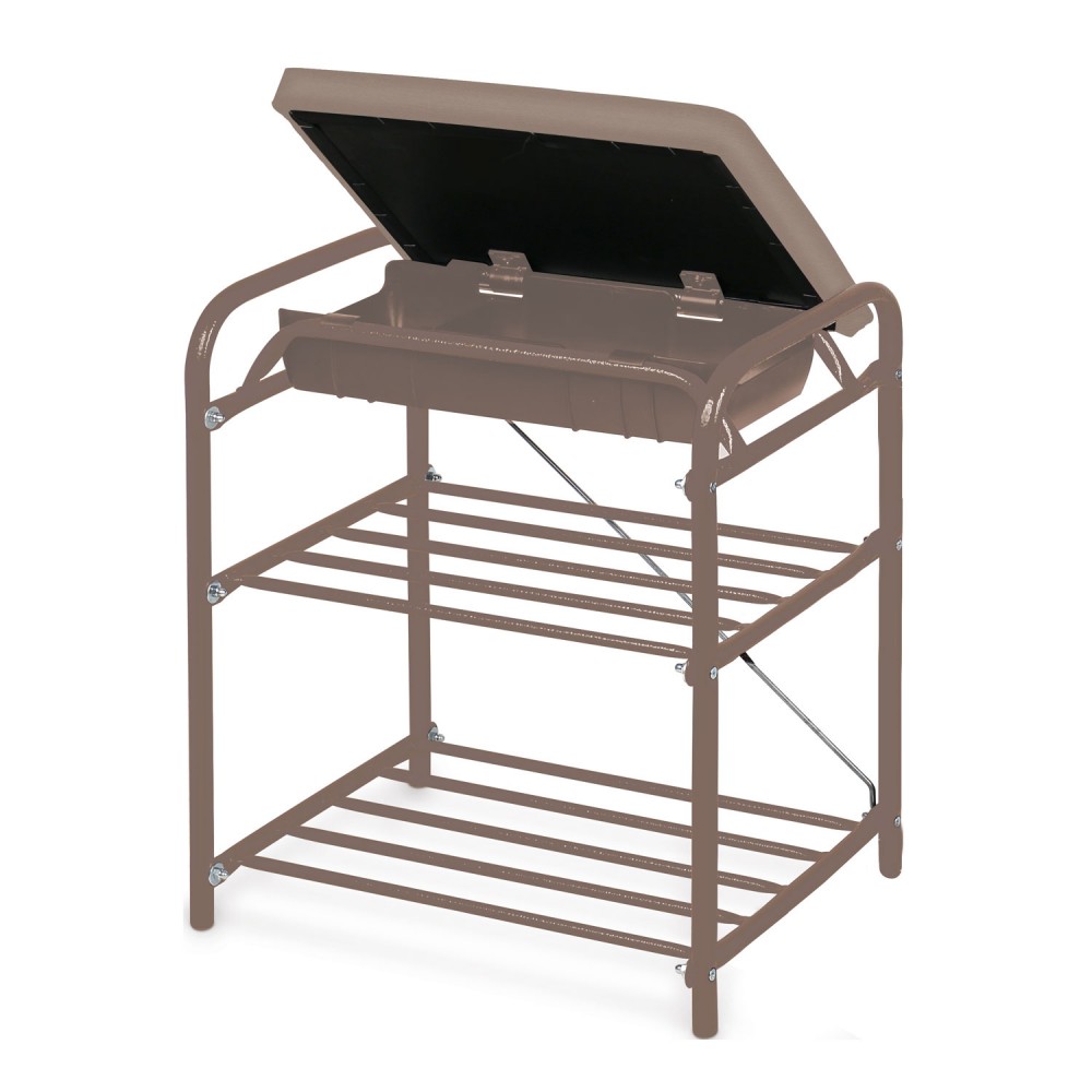 Банкетка с мягким сиденьем и ящиком БП1-1 выполнена из металлического усиленного каркаса с антикоррозионным напылением. Пластиковые колпачки на ножках защищают поверхность пола от царапин. Сиденье выполнено из плиты МДФ. Данная модель имеет 2 полки для хранения обуви.