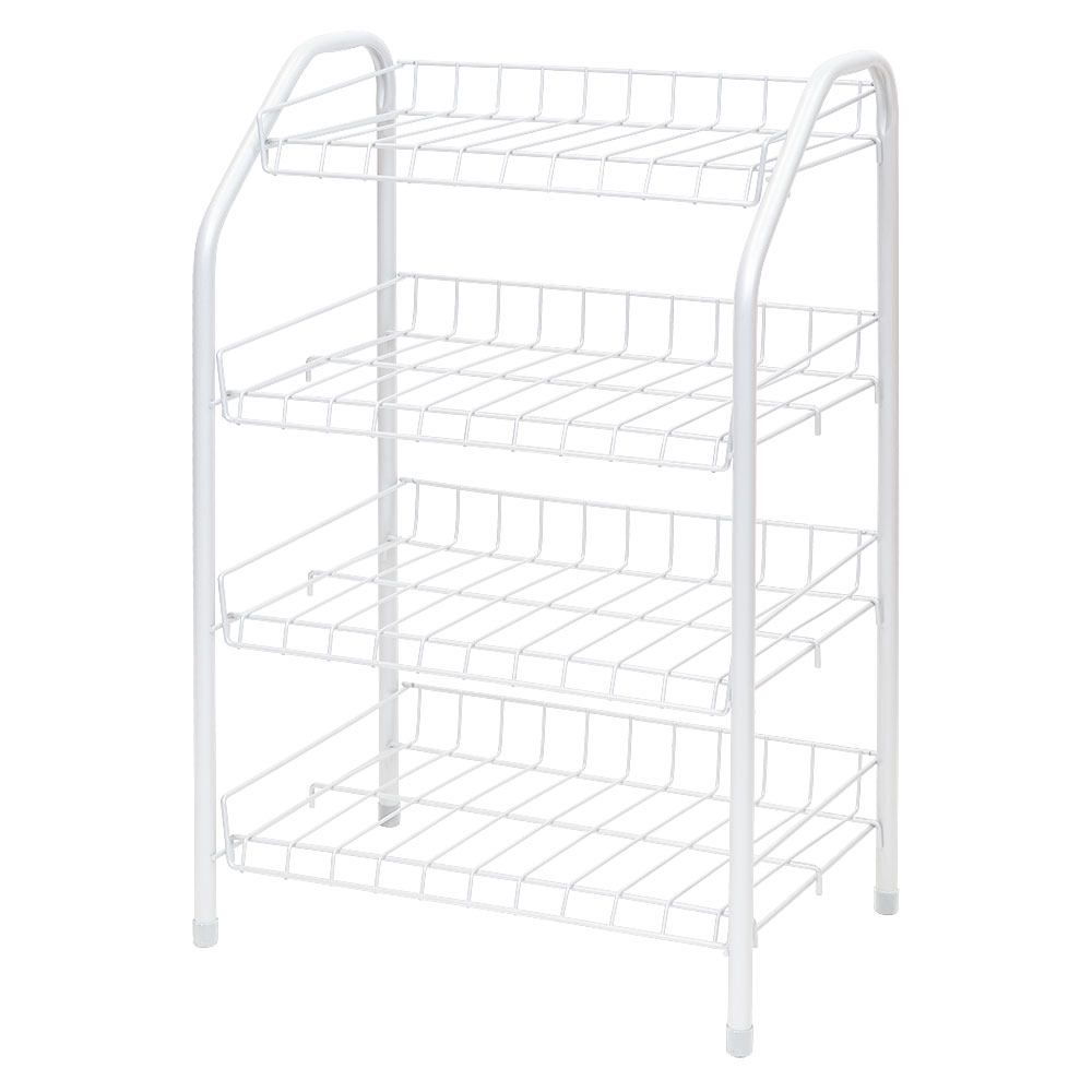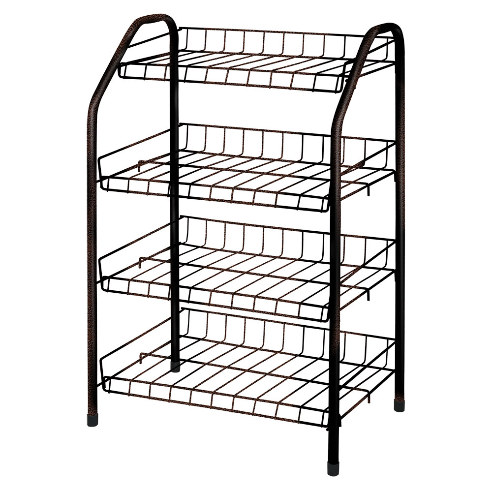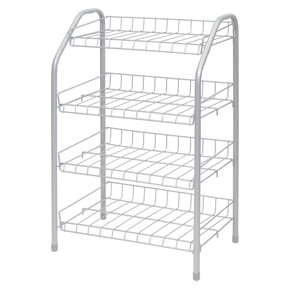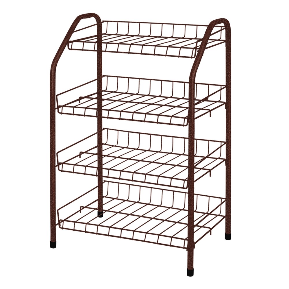 Этажерка для обуви Ника ЭТ2 выполнена из металлического каркаса. Пластиковые колпачки на ножках защищают поверхность пола от царапин. Данная модель имеет 4 полки для хранения обуви.