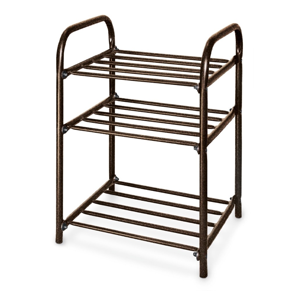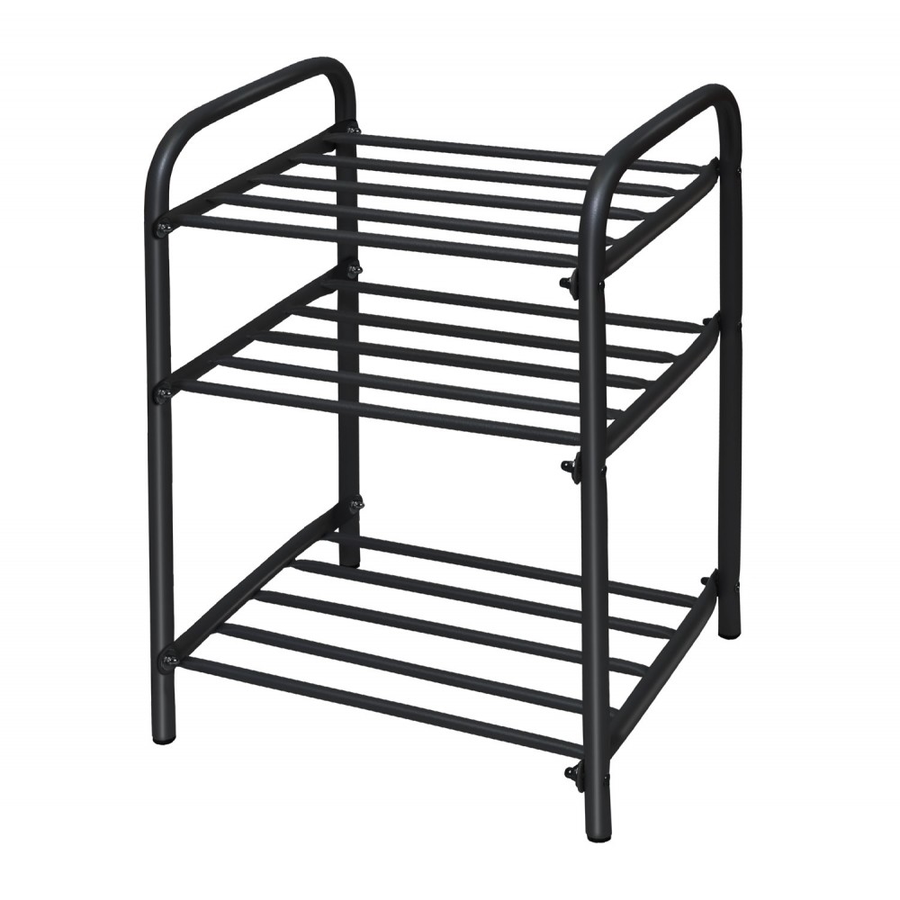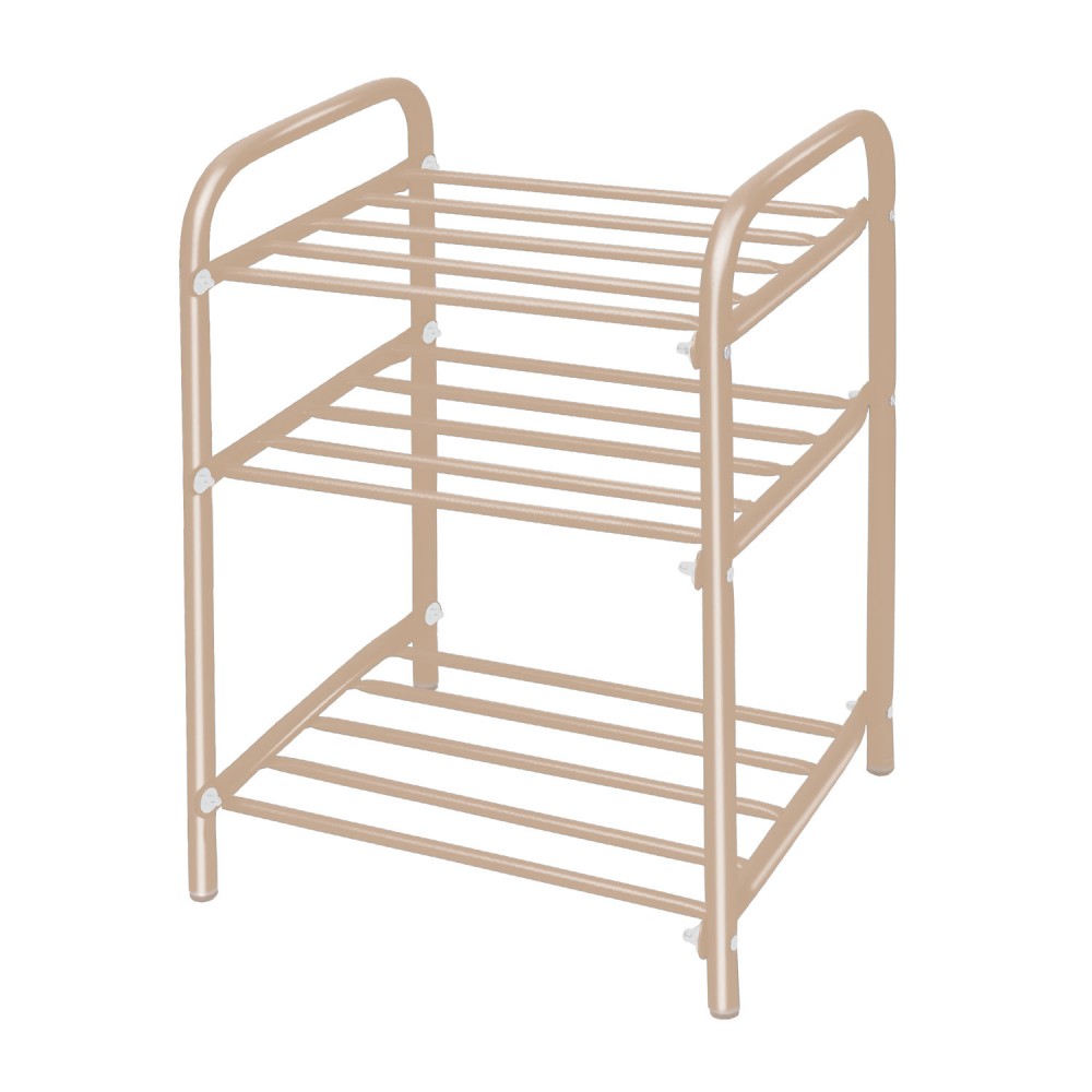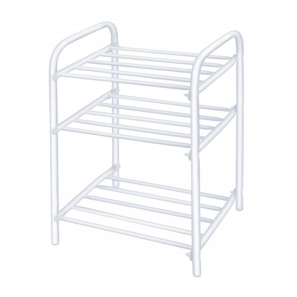 Этажерка для обуви Ника комфорт ЭТК1 выполнена из металлического каркаса. Пластиковые колпачки на ножках защищают поверхность пола от царапин. Данная модель имеет 3 полки для хранения обуви.