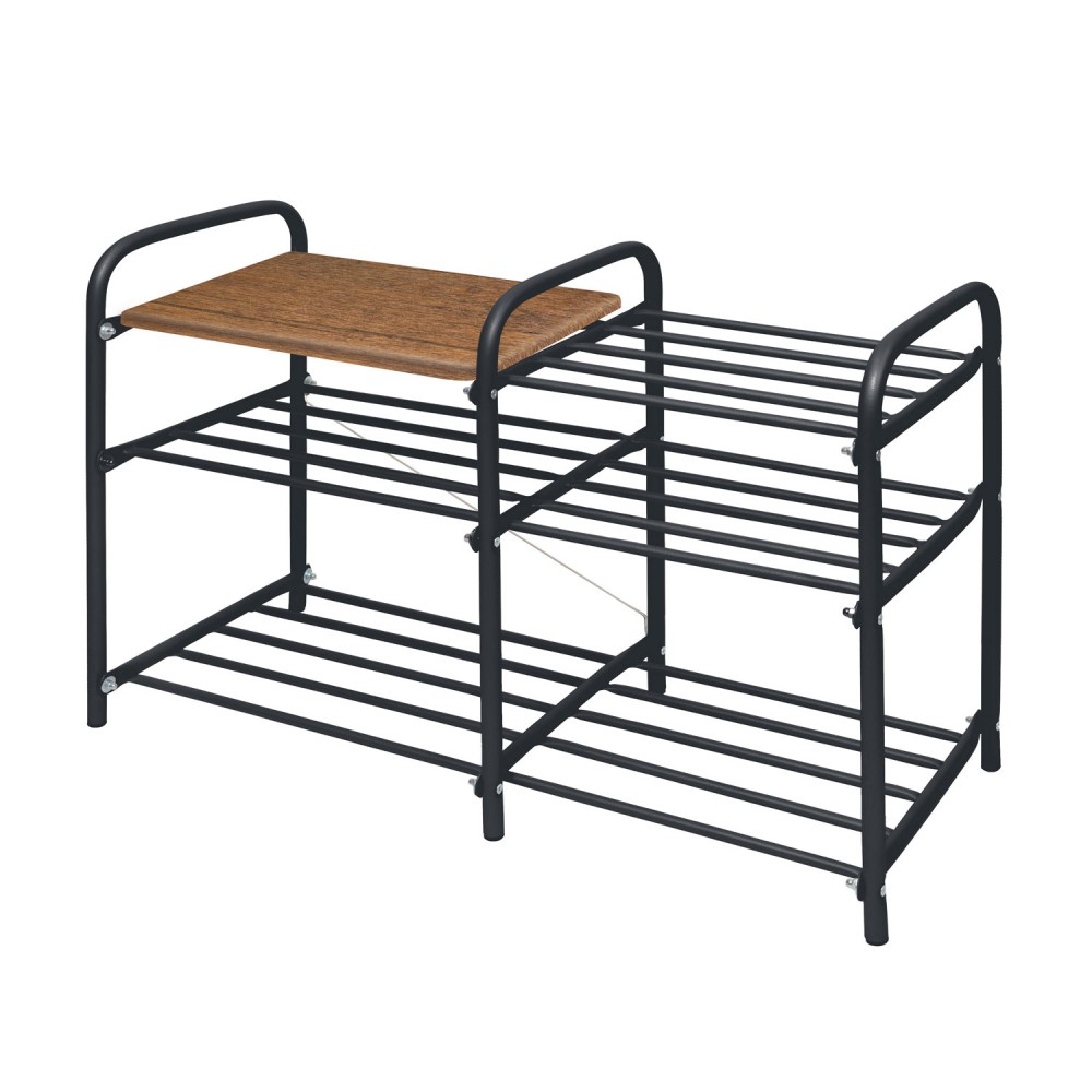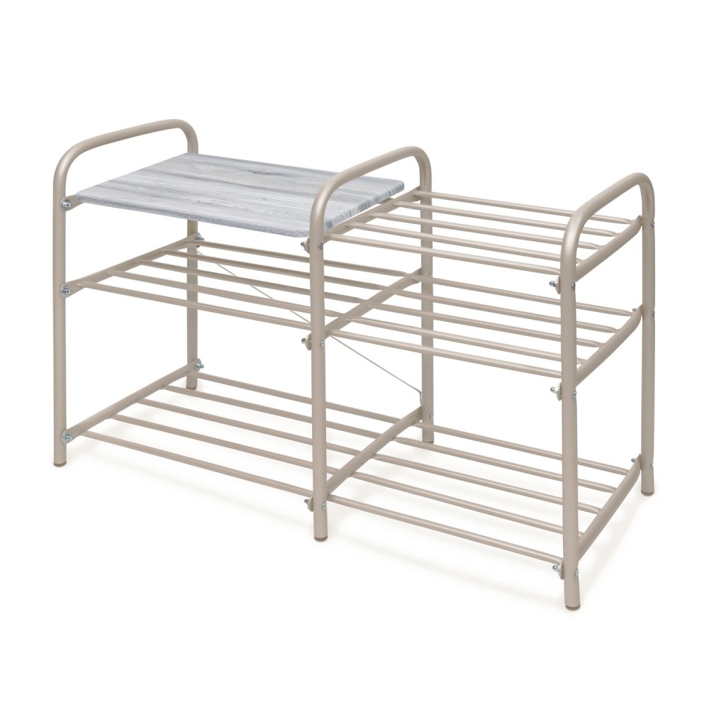 Этажерка для обуви Ника Люкс ЭТЛ4 выполнена из металлического усиленного каркаса с антикоррозионным напылением. Пластиковые колпачки на ножках защищают поверхность пола от царапин. Сиденье выполнено из плиты МДФ. Данная модель имеет 3 полки для хранения обуви.