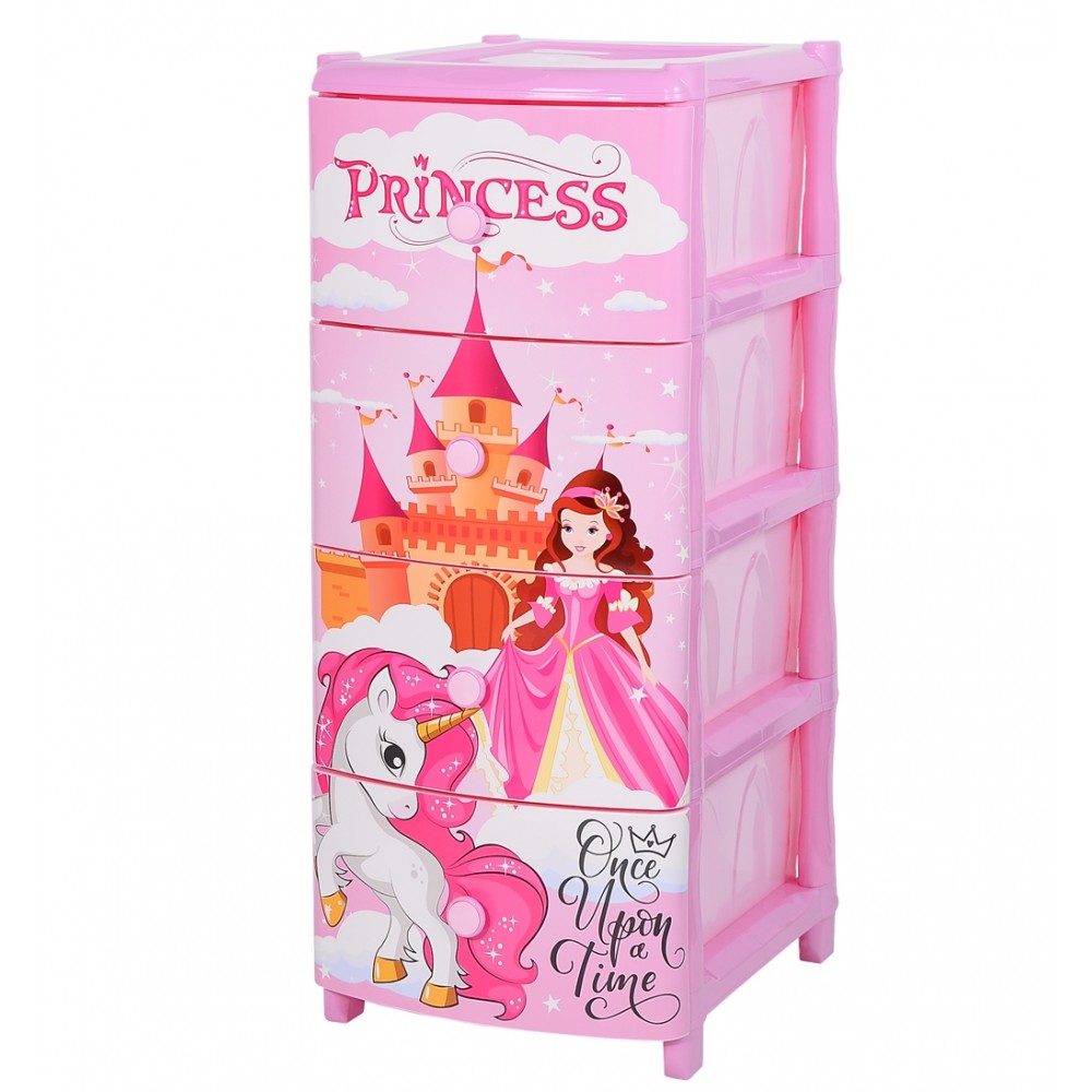 Комод №5 с рисунком Замок не оставит равнодушной ни одну принцессу. Нежная расцветка, современный дизайн подойдет для детской комнаты Вашей малышки. Четыре выдвижных вместительных ящика способны разместить большое количество очень важных и нужных вещей. Безопасные ручки помогут с легкостью открывать комод не травмируя ребенка. Легко собирается, легко моется, рисунок не вытирается.