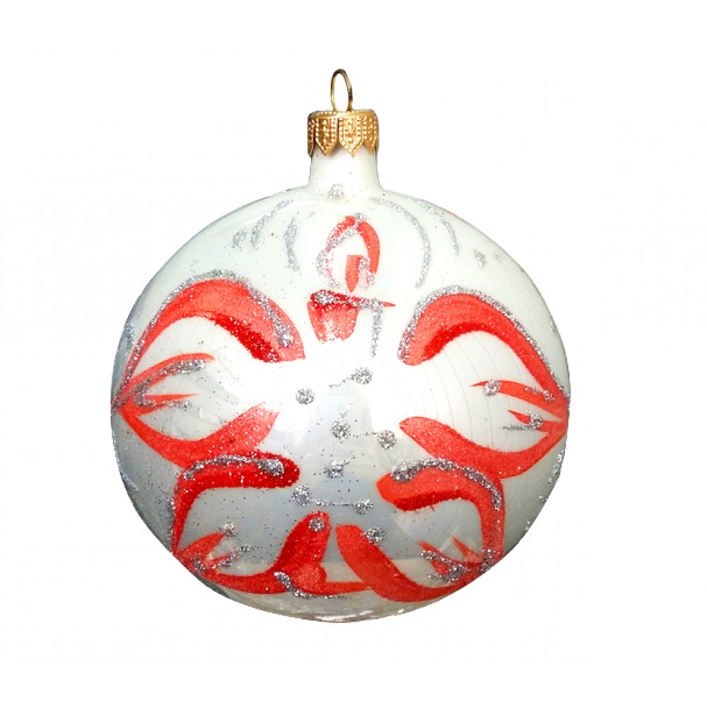 Белое стекло с красными лепестками станет не только яркой изюминкой на зеленой хвое, но и подчеркнет модные тенденции этого года! Еще большую привлекательность данной игрушке придают блестящие серебряные нити, подчеркивающие Рождественскую торжественность.