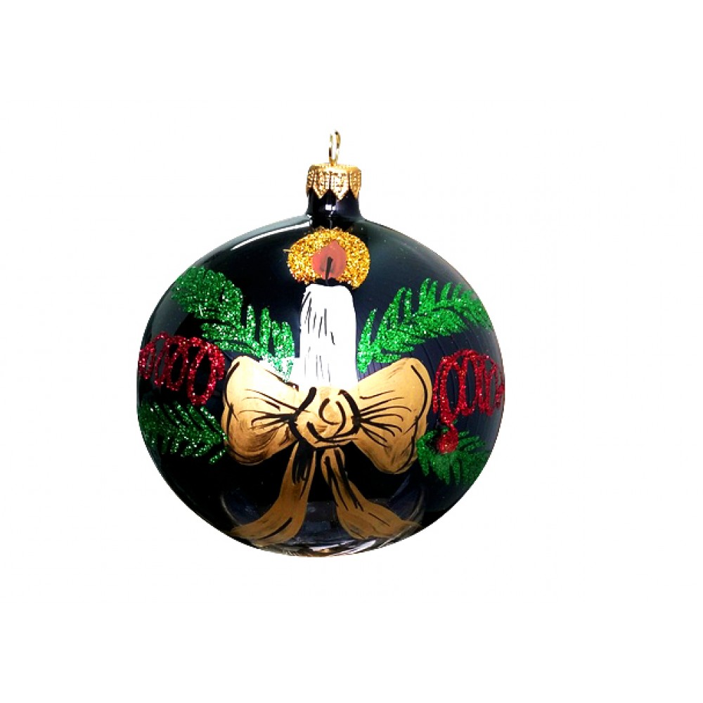 Сказочной красоты стильный набор стеклянных ёлочных шаров ручной работы Premium 22 - это просто находка для тех, кто ценит необычность и элегантность. Выполненные в темном цвете праздничные ёлочные украшения пропитаны атмосферой Рождества и украшены мохнатыми лапами зеленой хвои, узорами и праздничными свечами.