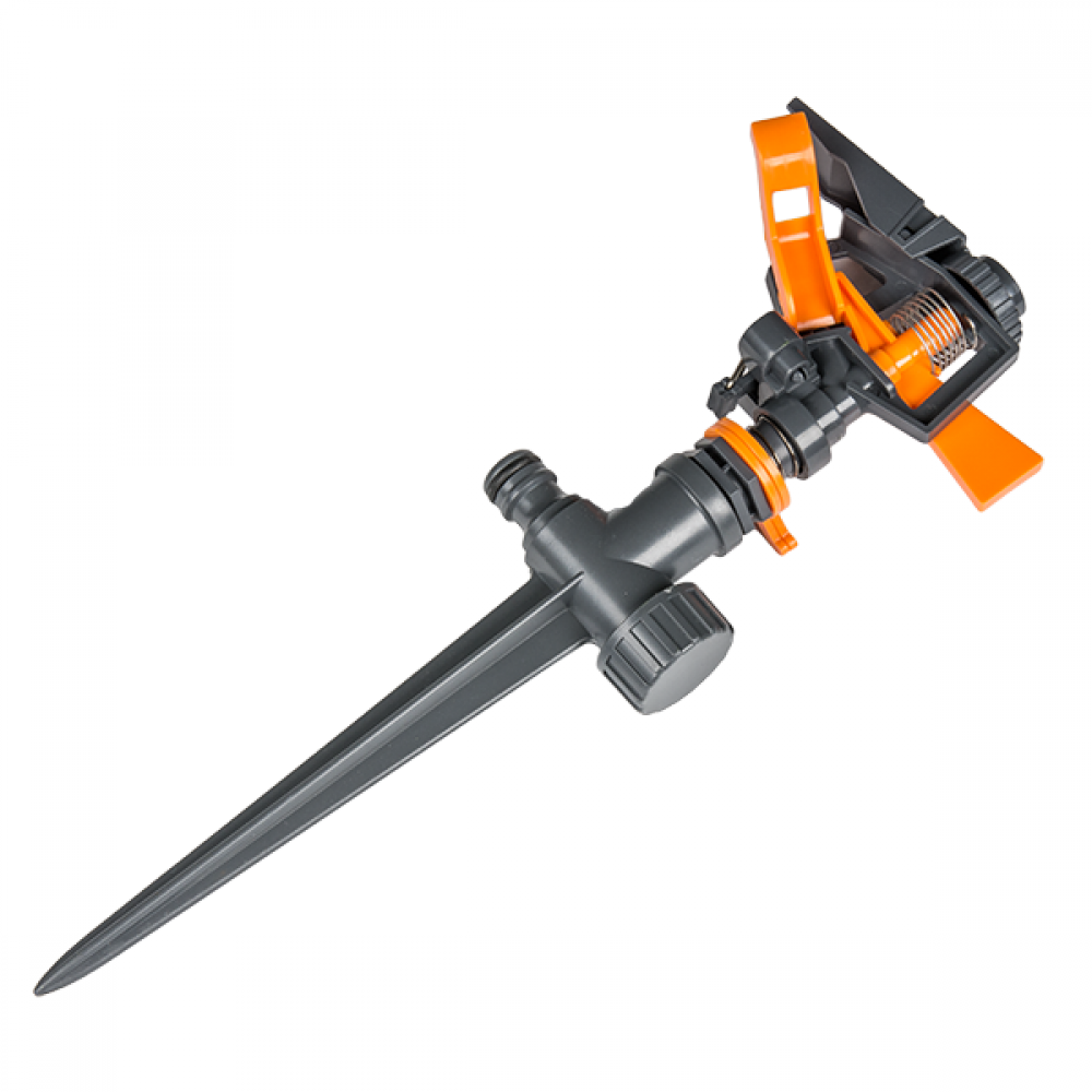 Ороситель пульсирующий вращающийся GOLD LINE на колышке выполнен из высококачественного пластика, оснащен адаптером под стандартный коннектор, а также дополнительной резьбой для последовательного подключения к другим оросителям. Конструкция позволяет регулировать поворот и размер струи с фиксацией выбранного сектора.