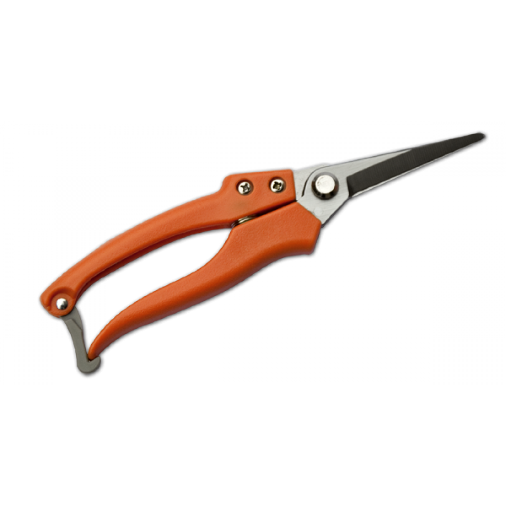 Специальный секатор с узкими лезвиями для точной подрезки цветов и других растений. Два лезвия из углеродистой стали SK-5. Ручки выполнены из пластмассы, есть фиксатор закрытого положения.