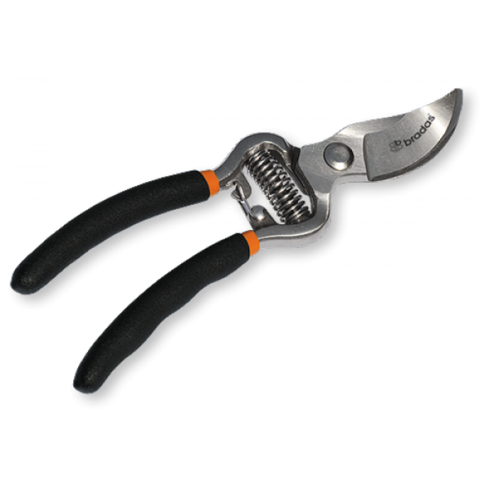 Универсальный секатор высокого качества. Предназначен для обрезки цветов и побегов. Наклоненные лезвия изготовлены из высококачественной стали. Регулируемый зажимной винт покрыт антикоррозионным покрытием. Эргономичная прорезиненная ручка предотвращает выскальзывание. Блокиратор в верхней части изделия позволяет работать одной рукой.