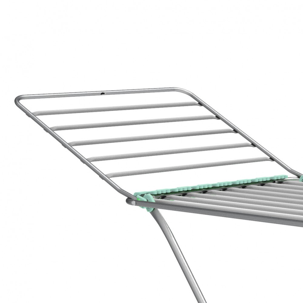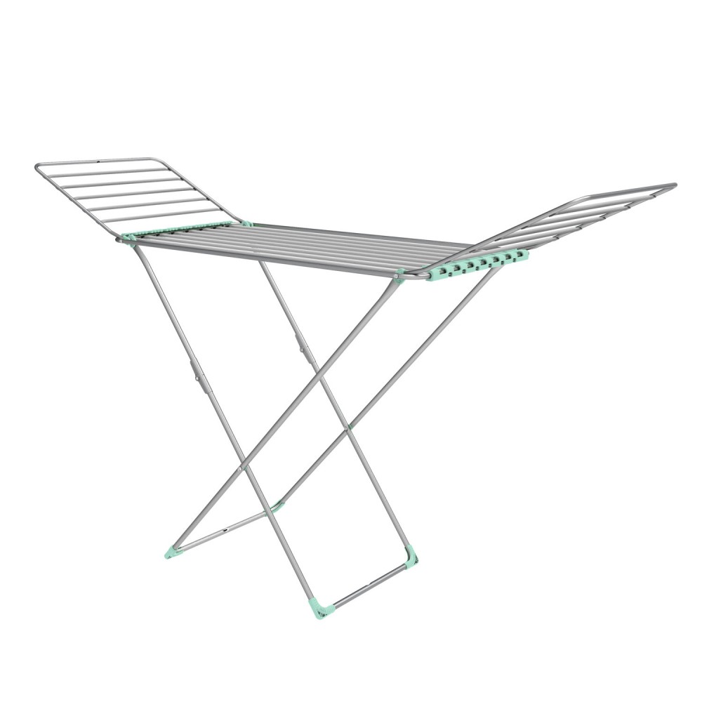 Конструкция с крыльями даёт возможность регулировать необходимый размер сушильной длины, в зависимости от количества вещей. Пластиковые уголки на ножках сберегут Ваш пол от царапин.
