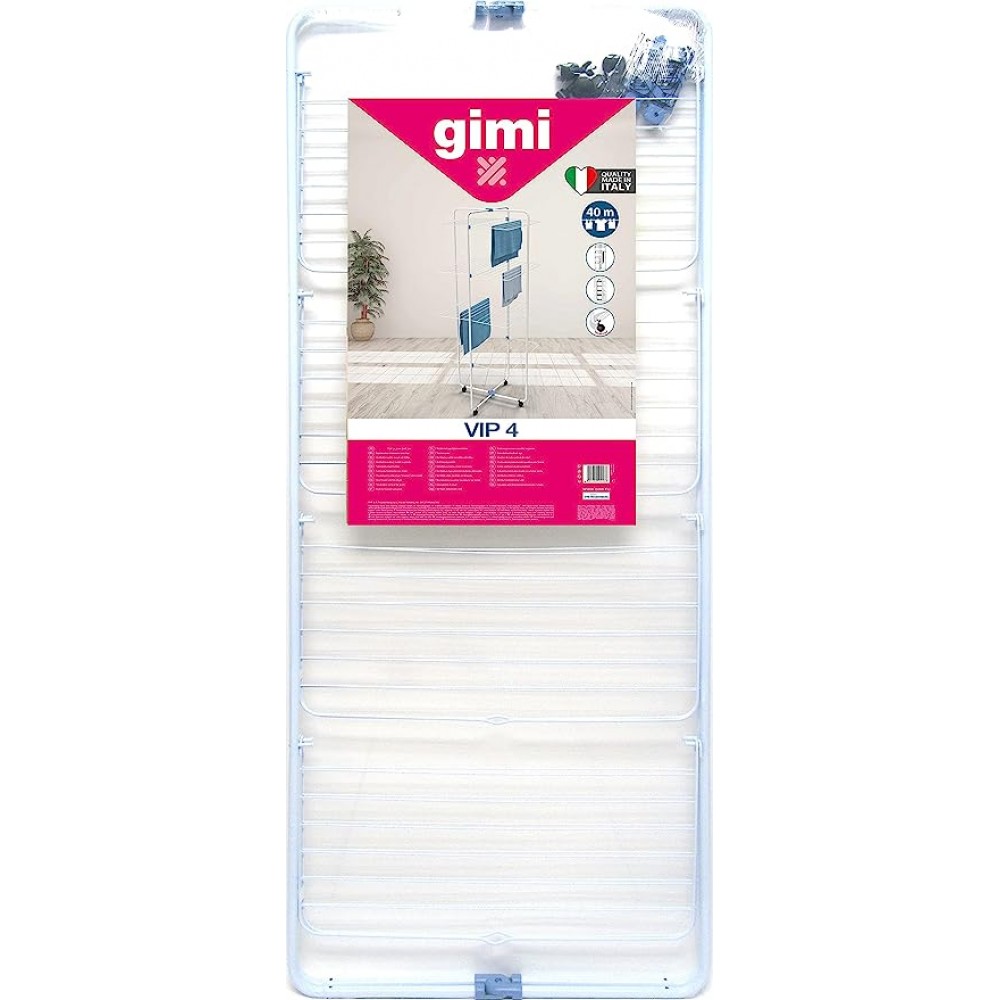 Фантастически удобная инновационная модель сушилки для белья Gimi Vip 4 вертикального типа родом из Италии. Это ноу-хау в вопросах экономии места и практичности в использовании. Большим преимуществом данной сушилки является три широкие сушильные зоны для одежды, а также два кронштейна для плечиков. При необходимости просушить небольшое количество белья, возможно использовать сушилку, развернув лишь половину сушильного крыла. Пластиковые наконечники на ножках препятствуют скольжению и защищают напольное покрытие. Конструкция выполнена из высокопрочной стали, выдерживает большие нагрузки более 20 кг. Складная модель позволяет экономить место в помещении, и вопрос с хранением больше не стоит так остро!