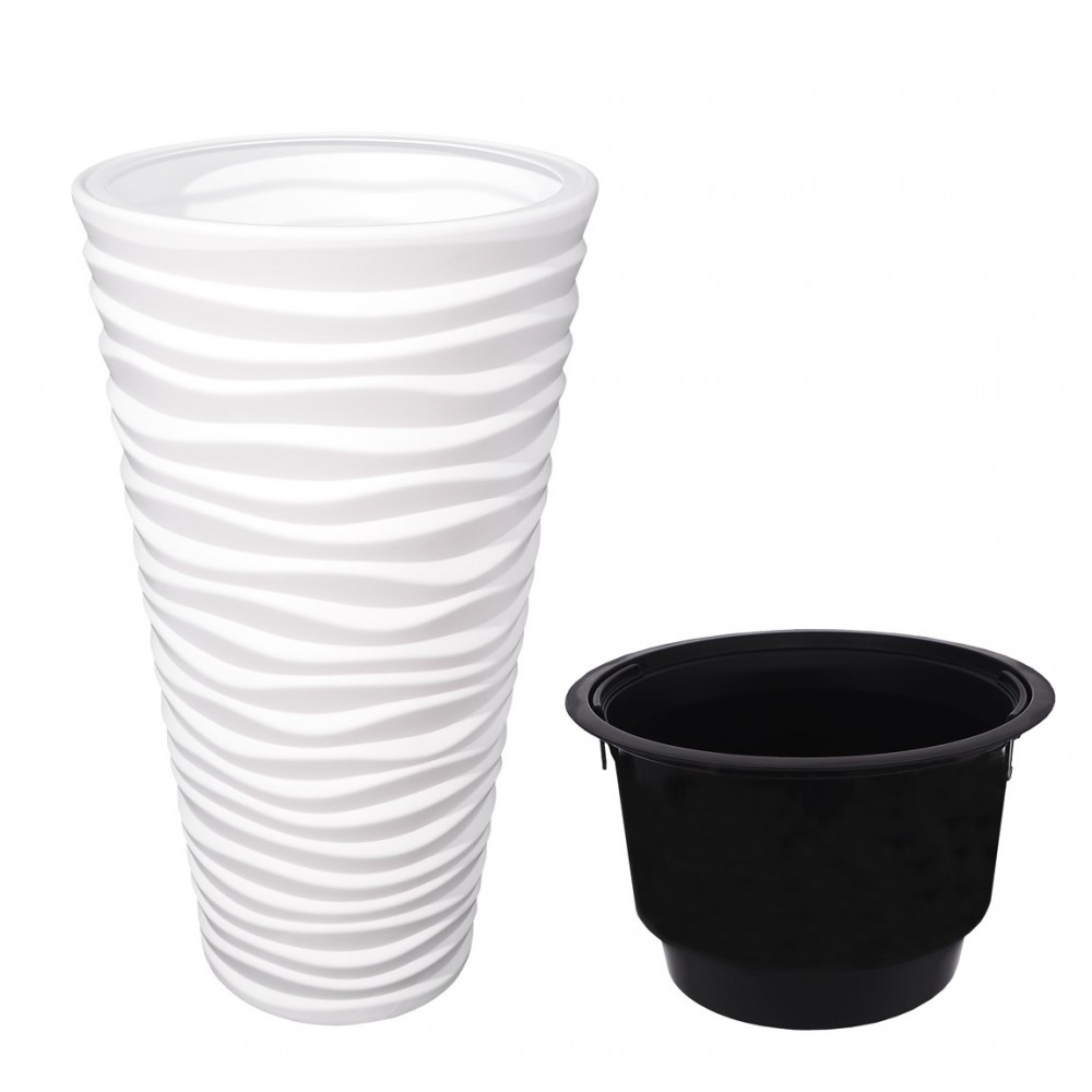 Кашпо выполнено из высококачественного ударопрочного пластика. Влага в пластиковых горшках задерживается дольше и растения не нуждаются в частом поливе.