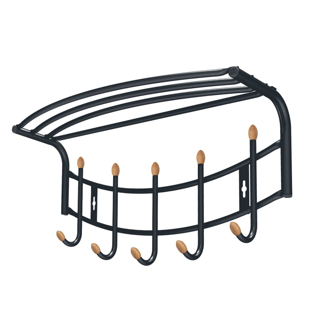 Вешалка настенная с полкой Ника Премиум ВНП4Д предназначена для хранения верхней одежды и головных уборов. Современный дизайн вешалки позволяет красиво вписать её как в офисный, так и в домашний интерьер. Вешалка выполнена из стали с полимерным покрытием, устойчивым к механическим воздействием. На крючках имеются деревянные наконечники. Помогает экономично организовать пространство. Крепится к стене при помощи двух шурупов (не входят в комплект).