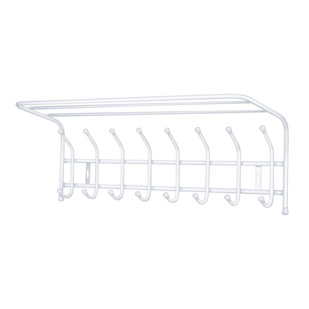 Вешалка настенная с полкой Ника ВП8 предназначена для хранения верхней одежды и головных уборов. Современный дизайн вешалки позволяет красиво вписать ее как в офисный, так и в домашний интерьер. Вешалка выполнена из стали с полимерным покрытием, устойчивым к механическим воздействием. На крючках имеются пластиковые наконечники. Помогает экономично организовать пространство. Крепится к стене при помощи двух шурупов (не входят в комплект).