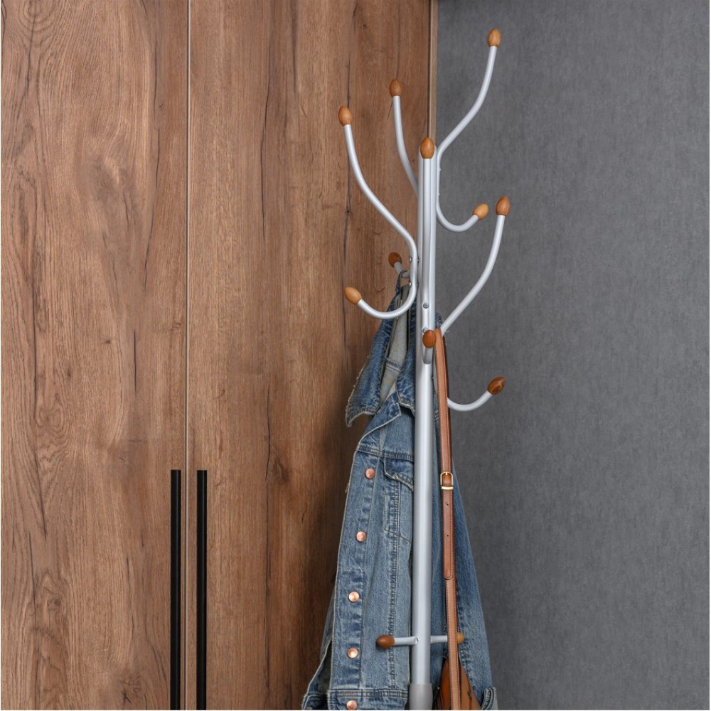 Напольная вешалка Ника ВКО1 предназначена для хранения верхней одежды. Современный дизайн вешалки позволяет красиво вписать её как в офисный, так и в домашний интерьер. Вешалка выполнена из стали с полимерным покрытием. На крючках имеются деревянные наконечники. Внизу предусмотрены крючки для сумок или зонтов. Устойчивое основание позволяет вешалке «не заваливаться» под тяжестью одежды. Помогает экономично организовать пространство. Изделие упаковано в коробку вместе с необходимой фурнитурой для сборки и подробной инструкцией.